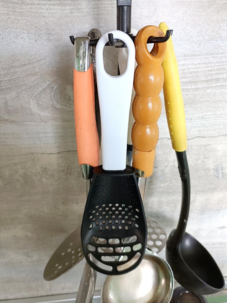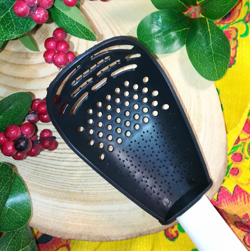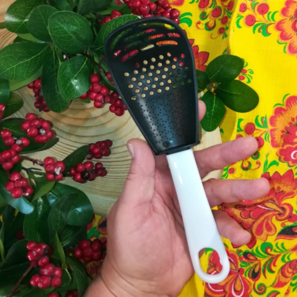 Многофункциональная кухонная ложка. Термостойкая подвесная ложка для картофеля и чеснока с ситечком.