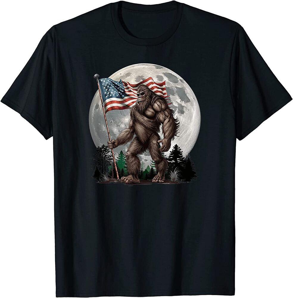 Футболка унисекс с изображением снежного человека с американским флагом и полной луной в патриотическом стиле — купить товар онлайн с бесплатной доставкой по всему миру!
