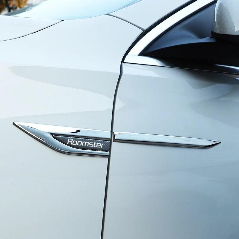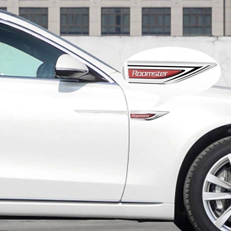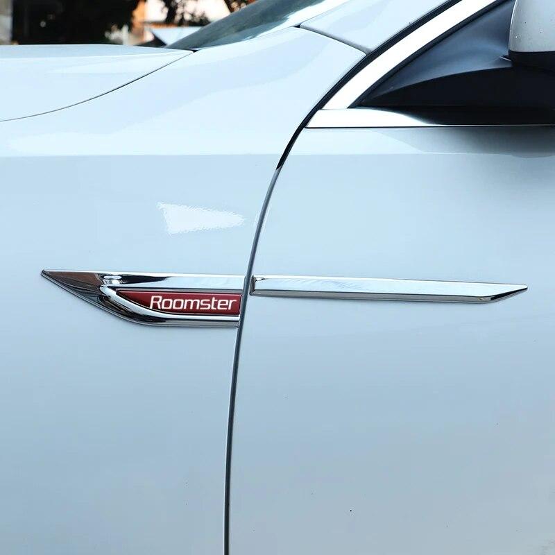 Аксессуары для эмблем автомобиля, 2 шт./компл. для SKODA ROOMSTER, автомобильное крыло, металлическая наклейка, внешние декоративные наклейки, модификация