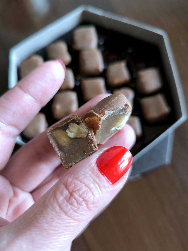 Лукум Koska с лесными орехами и шоколадом из Турции ❤️ Koska - рай настоящих турецких сладостей. Эта продукция категории премиум, обладает богатым и превосходным вкусом, приготовлена из натуральных продуктов. Лукум - это воплощение турецкого мастерства и традиций. Безумно вкусно!!! Коробка очень красивая, внутри нее можно найти историю бренда Koska. В коробочке 140 г. Конфетки уложены в ячейки. Внутри - мягкий лукум с лесными орехами, сверху покрыт молочным шоколадом. Вкус нежный, без приторности, в меру сладкий. От души рекомендую - обязательно попробуйте 🤗 Удачных покупок ❤️ Ваша Вика 🙂