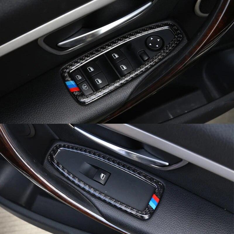 4 шт., крышка переключателя стеклоподъемника из настоящего углеродного волокна, декоративные наклейки для BMW 3 серии F30 2013-19, аксессуары для салона автомобиля