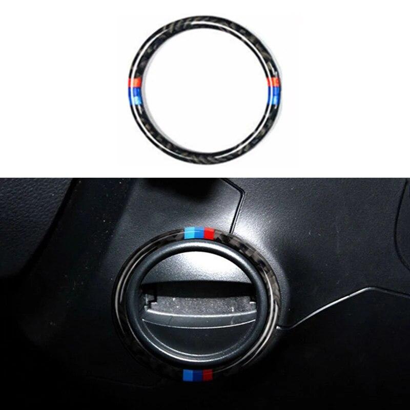 Углеродное волокно, кнопка запуска двигателя автомобиля, кнопка зажигания, замочная скважина, кольцо, наклейка для BMW E60 5 серии 2008-10, аксессуары