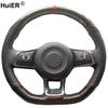 Для VW Golf 7 GTI Golf R MK7 Passat Polo Scirocco 2015 2016 автомобильный чехол на руль черная перфорированная кожа красная линия красная полоска