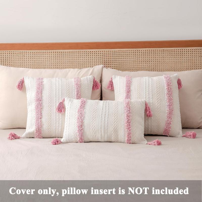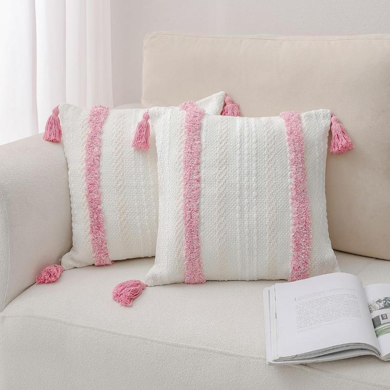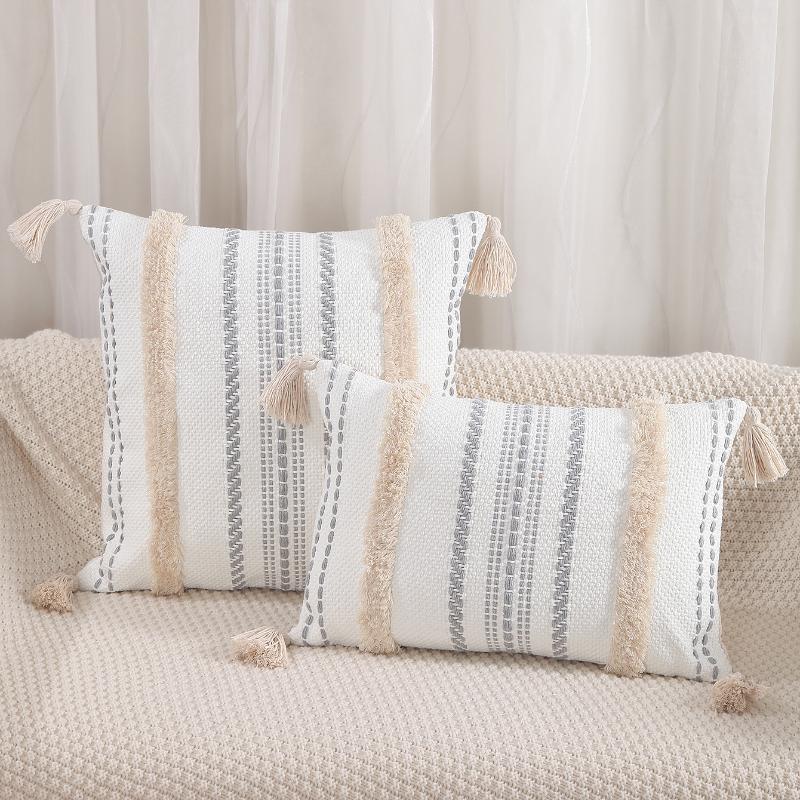 Хлопчатобумажная пряжа, жаккардовая тафтинговая наволочка с кисточками, офисная подушка для талии, домашний диван, прикроватная подушка