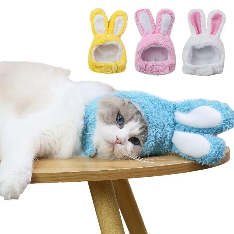 Милый головной убор для питомца Шапка с кроличьими ушками для кошек Теплая плюшевая кошачья шляпа Рождественский косплей Теплый капюшон Головной убор для котенка Товары для питомцев