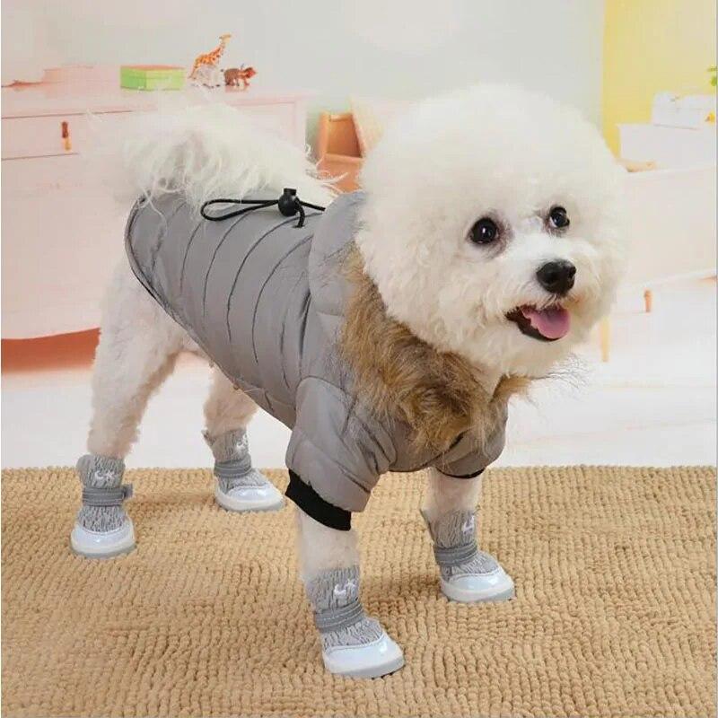 Зимние теплые пальто для собак для маленьких собак, куртки с меховым капюшоном, водонепроницаемые костюмы для домашних животных, костюмы для щенков, одежда для французского бульдога, чихуахуа, одежда
