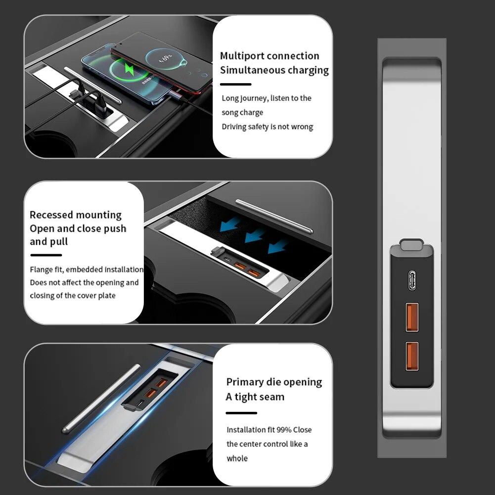 USB-концентратор для модели Tesla 3 года 2022, 27 Вт, быстрое внутреннее зарядное устройство, интеллектуальная USB-док-станция, аксессуары для шунтирующего концентратора, новинка