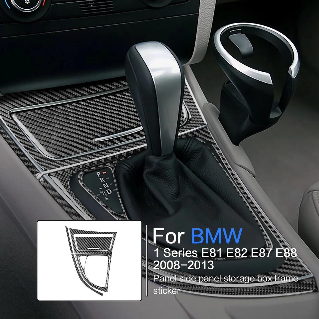 Для BMW 1 серии E81 E82 E87 E88 2008-2013 аксессуары из углеродного волокна, панель переключения передач автомобиля, боковая полоса, ящик для хранения, наклейка на раму