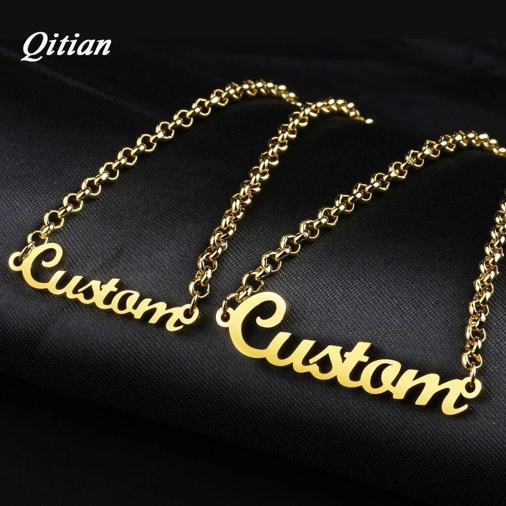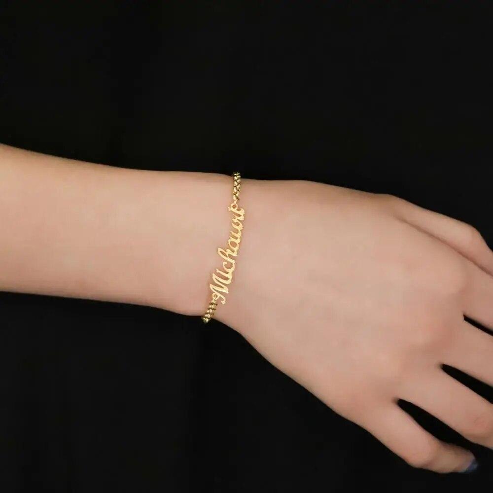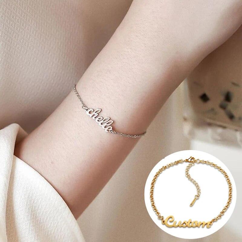 Персонализированный браслет с именем, браслет из нержавеющей стали с покрытием из 18-каратного золота, браслеты с именной табличкой по индивидуальному заказу для пары, очаровательные ювелирные изделия