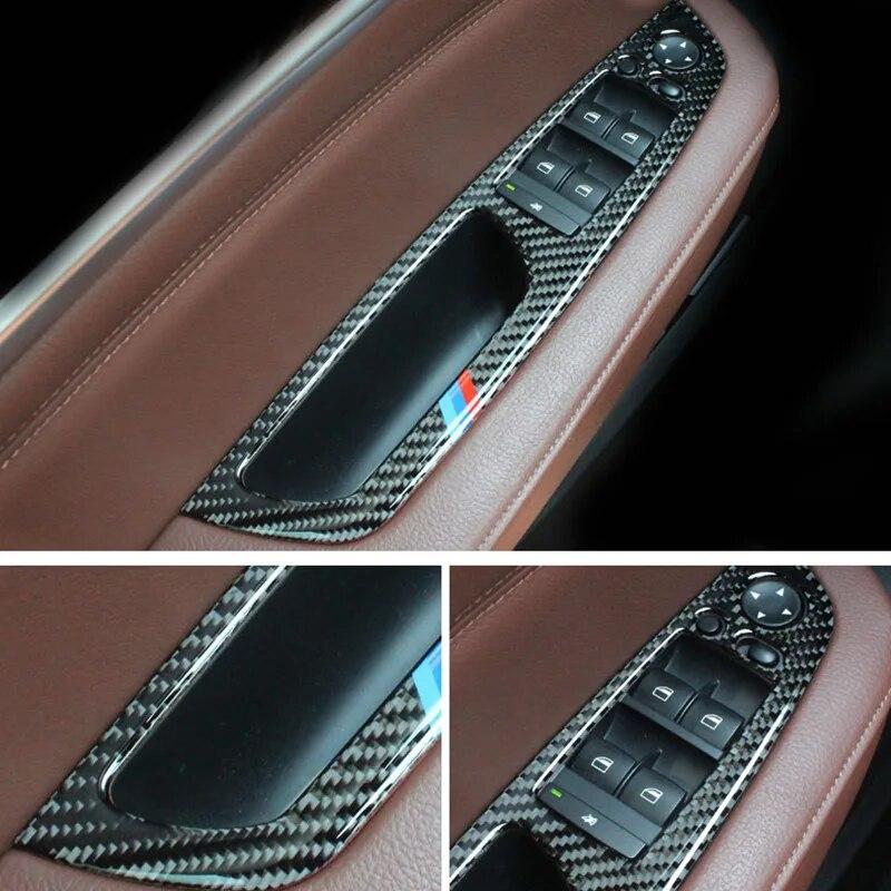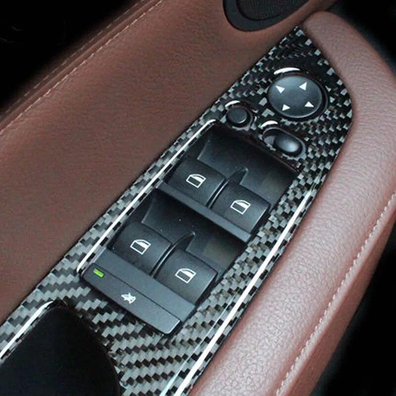 4 шт. карбоновые наклейки на рамку панели управления стеклоподъемника автомобиля из углеродного волокна для BMW X5 E70 X6 E71, аксессуары