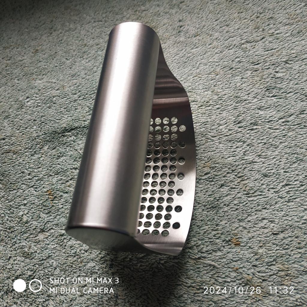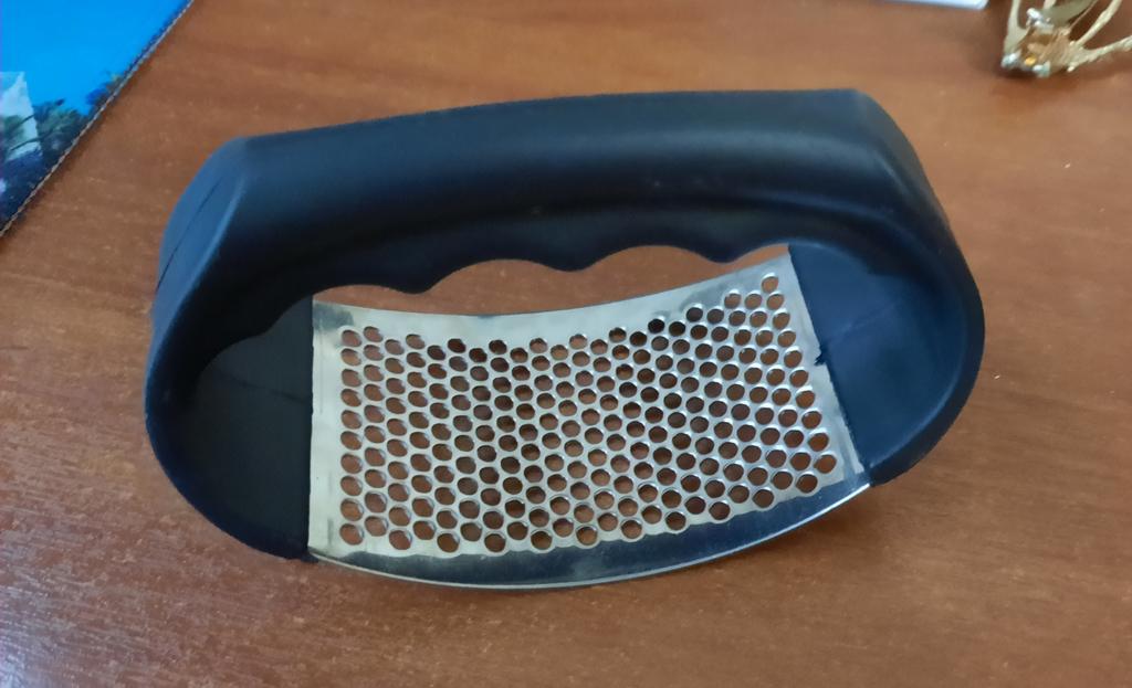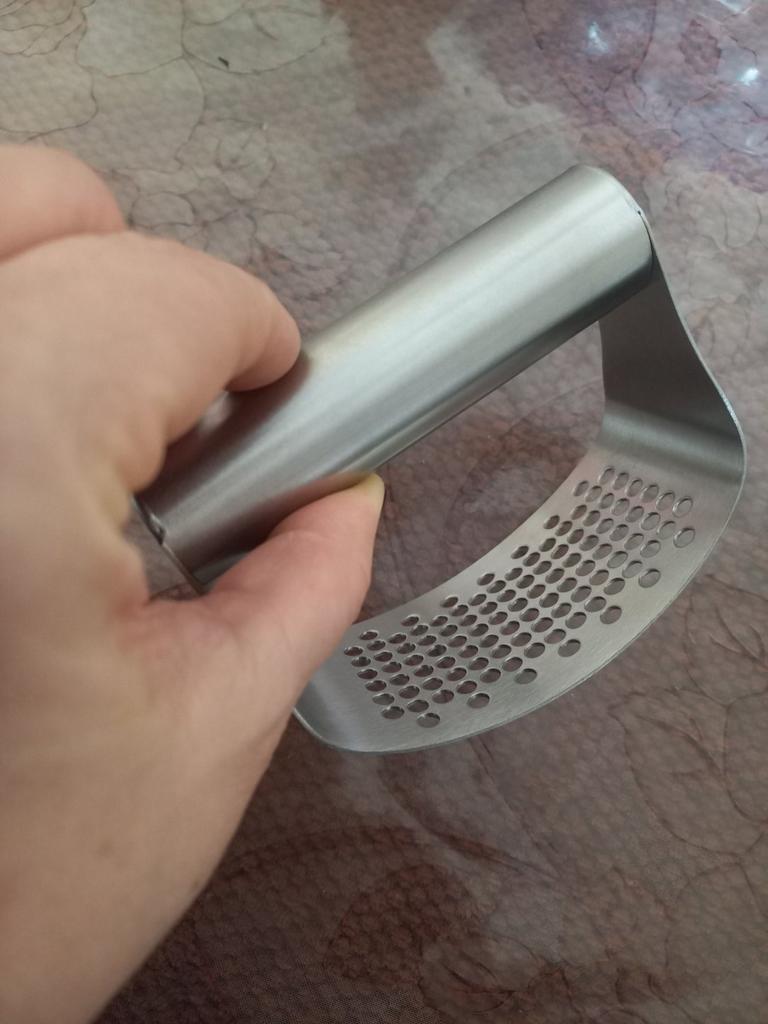 Доставка посылки быстрая 15 дней, в посылке три заказа. Пресс для чеснока изготовлен из нержавеющей стали толщиной 1мм надеюсь прогибания не будет, отверстия диаметром 4мм крупноваты. Очень удобная кухонная принадлежность, при пользовании добавлю отзыв. Спасибо продавцу и Joom за быструю доставку. Добавляю отзыв: пресс давит чеснок на ура, пресс не прогибаться, не деформируется, отличный кухонный инструмент.