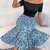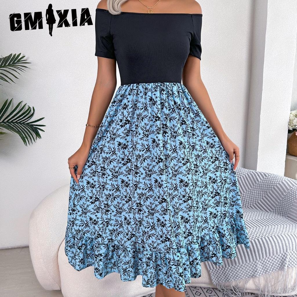 GMXIA Женская мода, лето, весна, цветы с открытыми плечами и оборками, повседневные платья с коротким рукавом и высокой талией на одно плечо