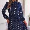 GMXIA Женская мода лето-весна принт в горошек с длинным рукавом и v-образным вырезом тонкие повседневные платья со шнуровкой и складками