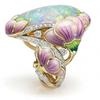Нежное модное золотого цвета кольцо с цветочным принтом, лаванда, фуксия, лотос, эмаль, овальная огранка, огненный камень, свадебные обручальные кольца для женщин