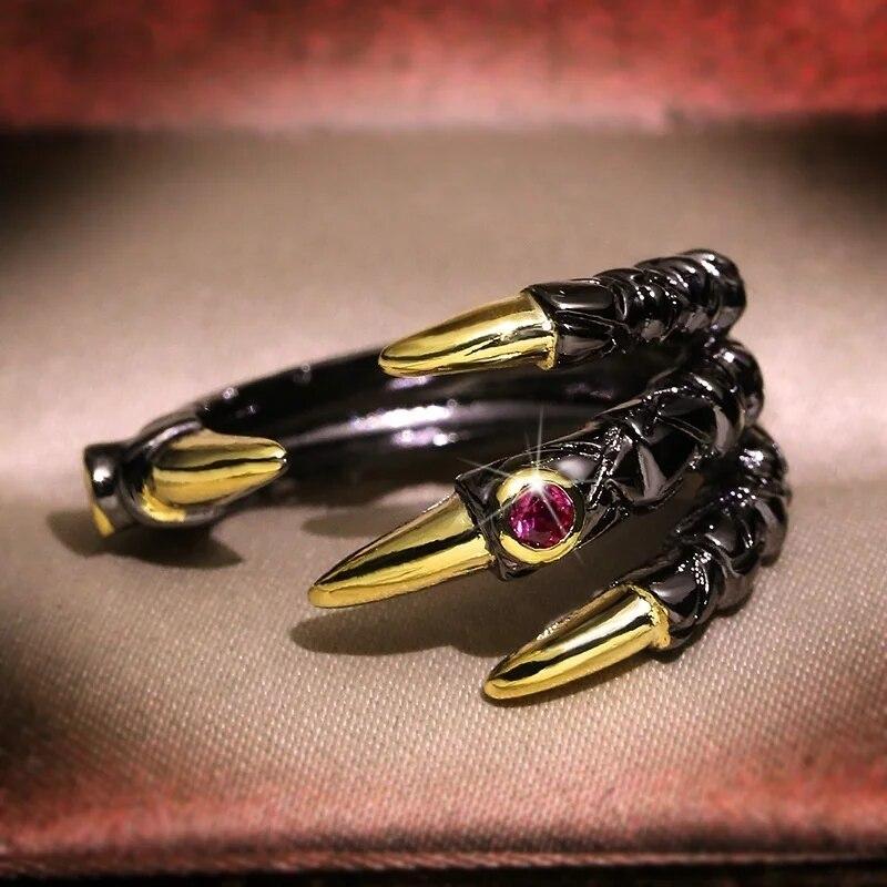 Винтажное металлическое кольцо с когтем дракона для мужчин, индивидуальное двухцветное кольцо в стиле панк с инкрустацией розового циркона, кольцо демона, ювелирные изделия для вечеринок