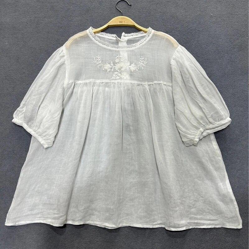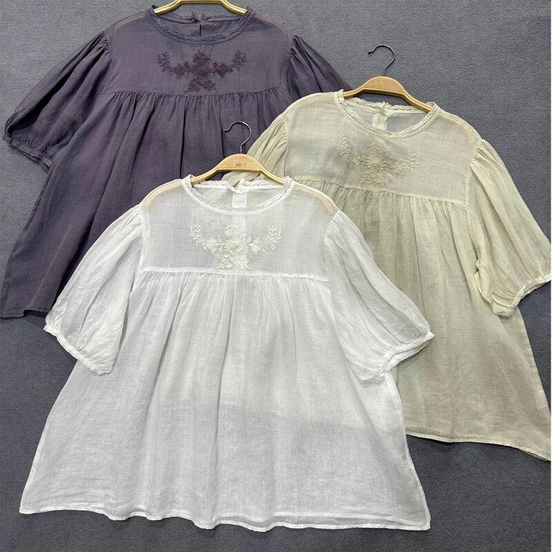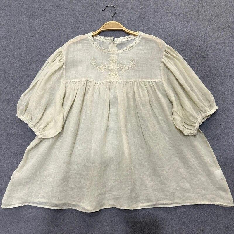 Johnature Японская литературная вышитая рубашка с коротким рукавом, женские летние свободные универсальные пуловеры, рубашки