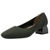 Женские туфли на однотонном каблуке Вязаные туфли-лодочки Женские модельные туфли на низком каблуке Офисные повседневные туфли с квадратным носком в деловом стиле на массивном каблуке Модные женские туфли без шнуровки