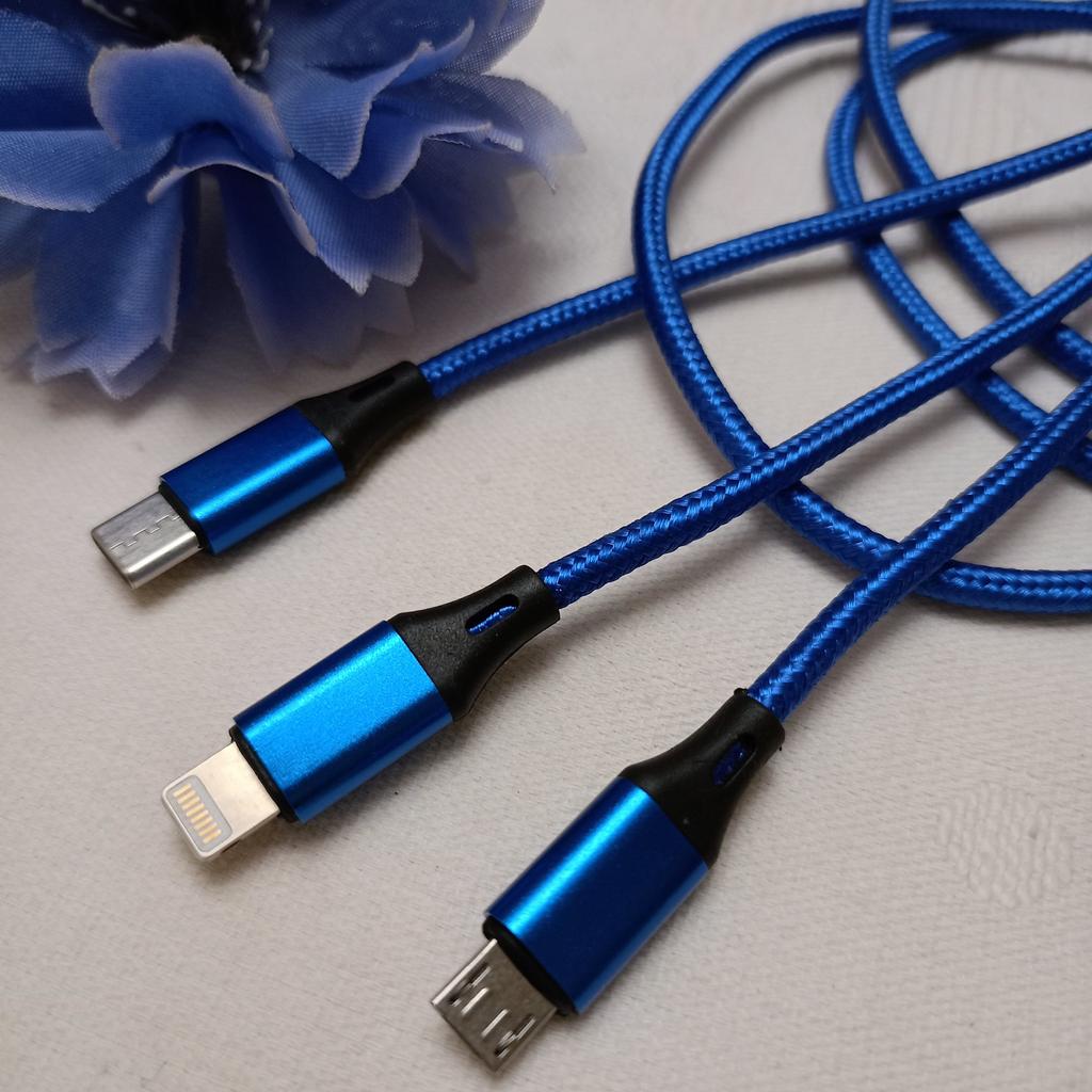 Универсальный провод для зарядки, usb кабель 3 в 1, позволяющий заряжать одновременно до трех устройств. 📌Невероятно удобный шнур, который позволит вам избавиться от целого вороха проводов. Кабель для зарядки совмещает ✔️type-c ✔️micro usb ✔️зарядка для айфона 📌Такой «трехглавый дракон» станет настоящей палочкой-выручалочкой для любой семьи, члены которой пользуются гаджетами разных производителей. При этом по техническим характеристикам изделие подходит для безопасного аккумулирования энергии сразу несколькими вариантами электроники. 📌Оплетка из нейлоновых нитей придает не только привлекательный внешний вид, но и определяет такие качества, как гибкость и прочность. Провода не перегибаются, их поверхность устойчива к износу, они не путаются, не перекручиваются. Все штекеры выполнены из прочного алюминиевого сплава, качества которого гарантируют надежность сопряжения и длительный срок службы металлических фрагментов. 📌4 цвета на выбор 📌длина 1.2 м