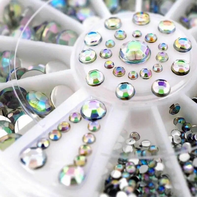 1,5 мм/2 мм/3 мм/4 мм смешанные серебряные круглые стразы для акрилового УФ-геля, блестящее украшение для дизайна ногтей в колесной коробке