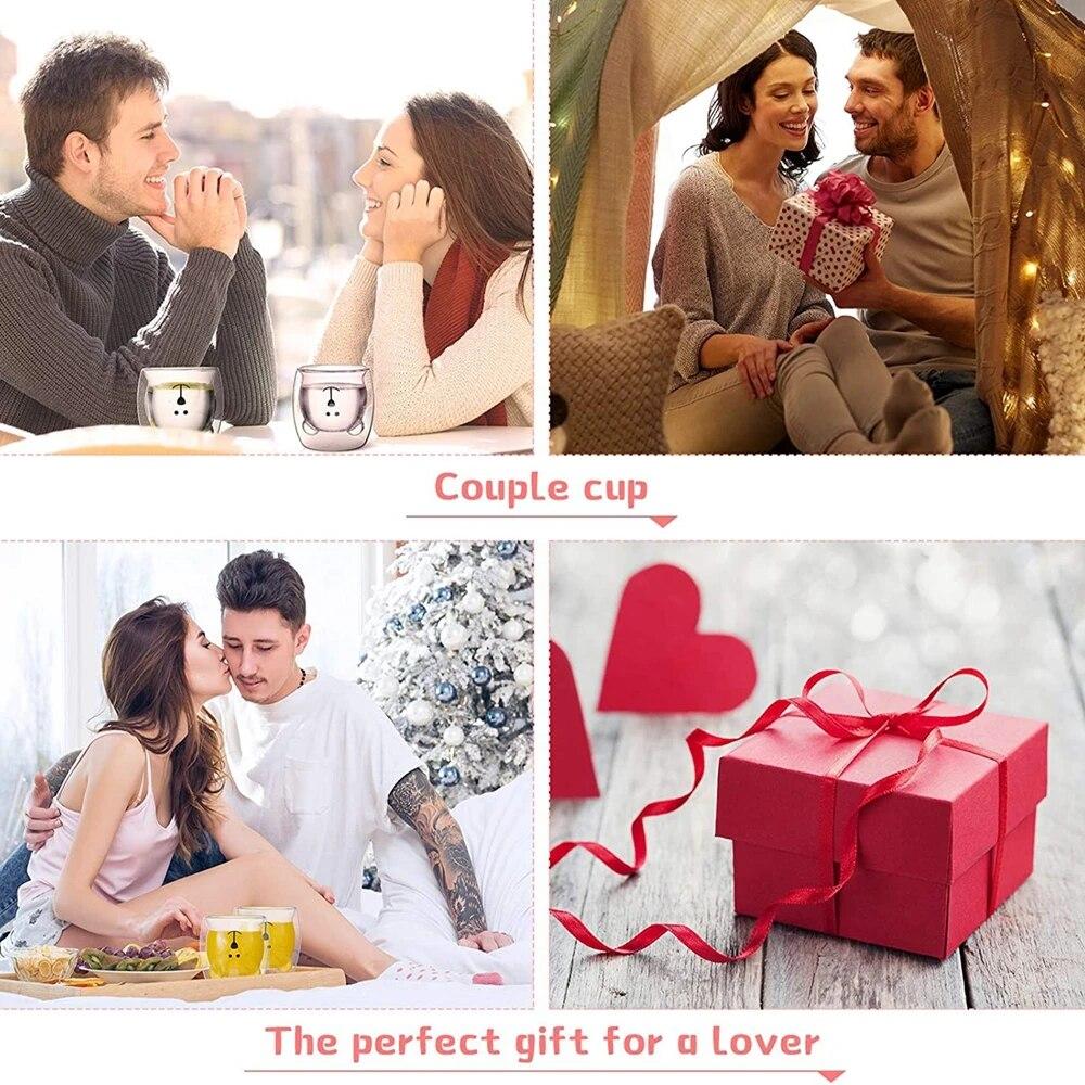 Милые стеклянные кружки с медведем, забавные двухслойные изоляционные чашки, чашки для капучино, латте, подарки на день Святого Валентина