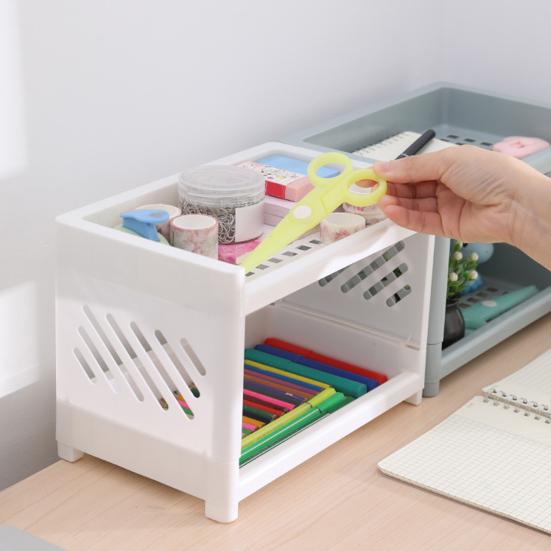 Настольная стойка, компактный двухслойный полипропиленовый многофункциональный органайзер для хранения косметики, настольный органайзер, канцелярские товары для ванной комнаты