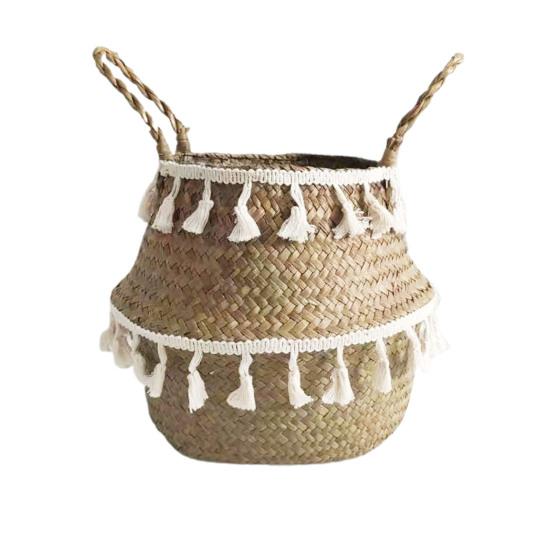 Корзина для хранения всякой всячины с кисточками из искусственной морской травы, контейнер для домашнего горшка