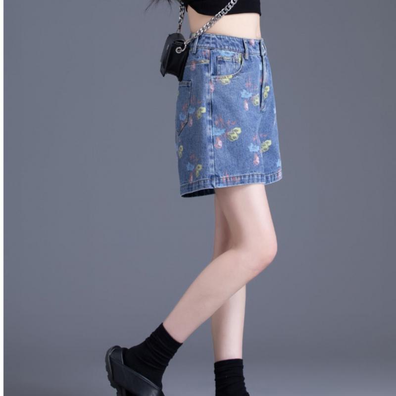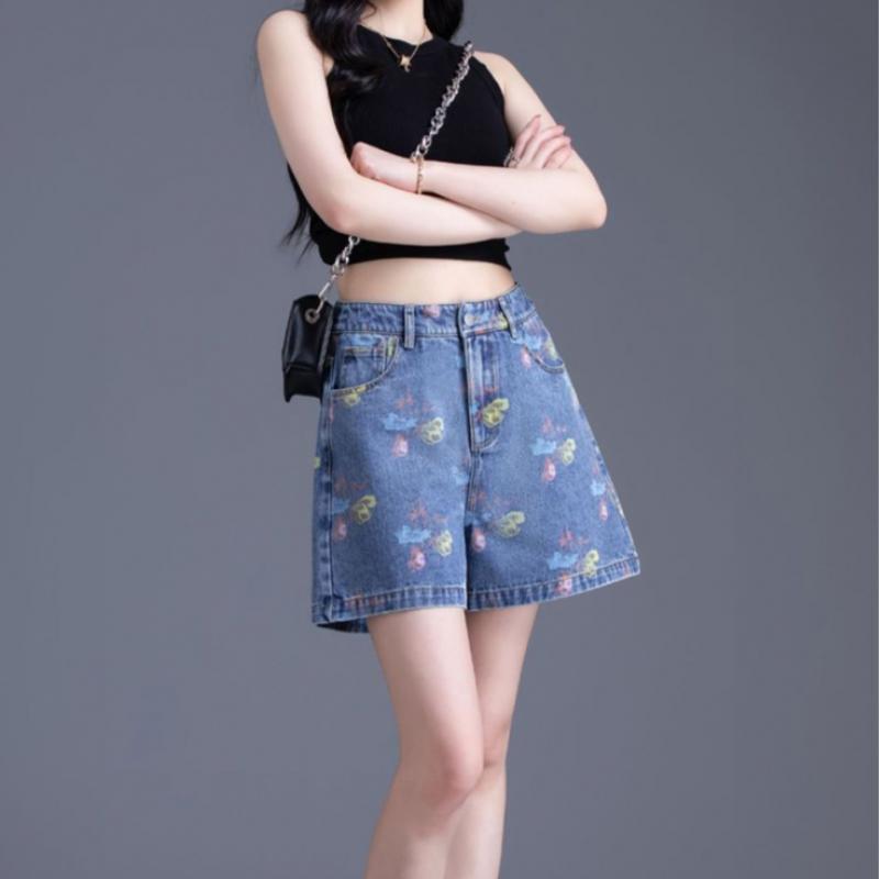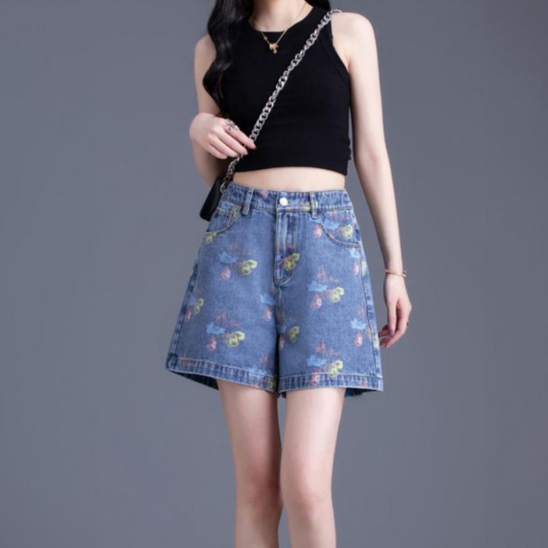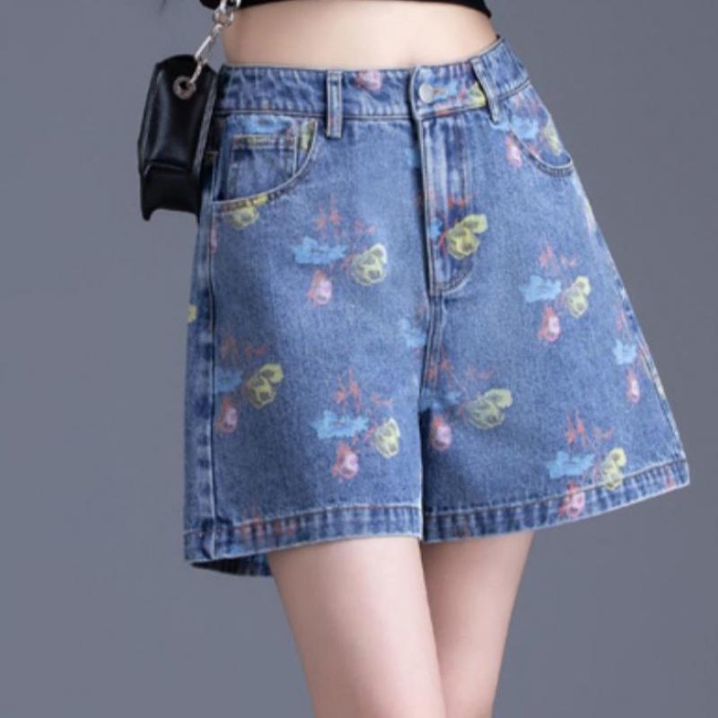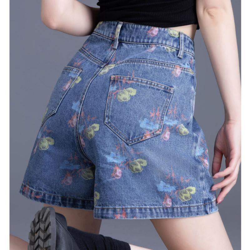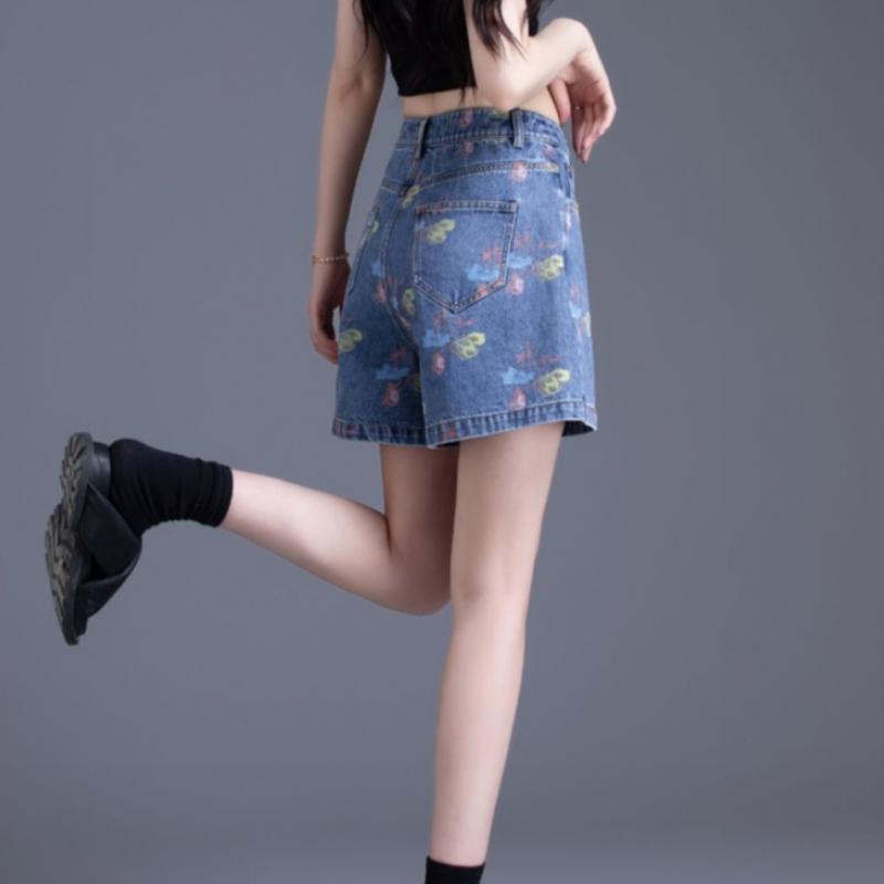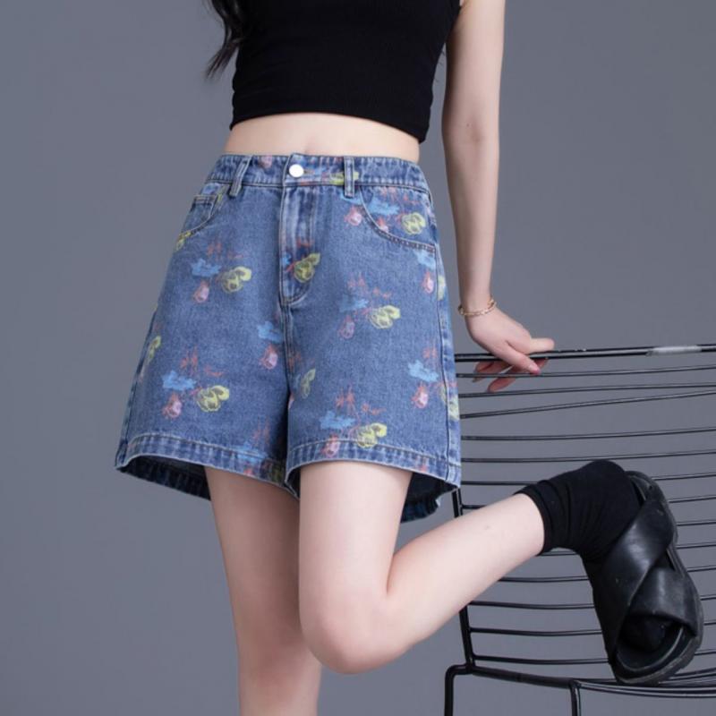 Женские джинсовые шорты, летние модные тонкие шорты с высокой талией и принтом, простые свободные повседневные спортивные велосипедные шорты с широкими штанинами