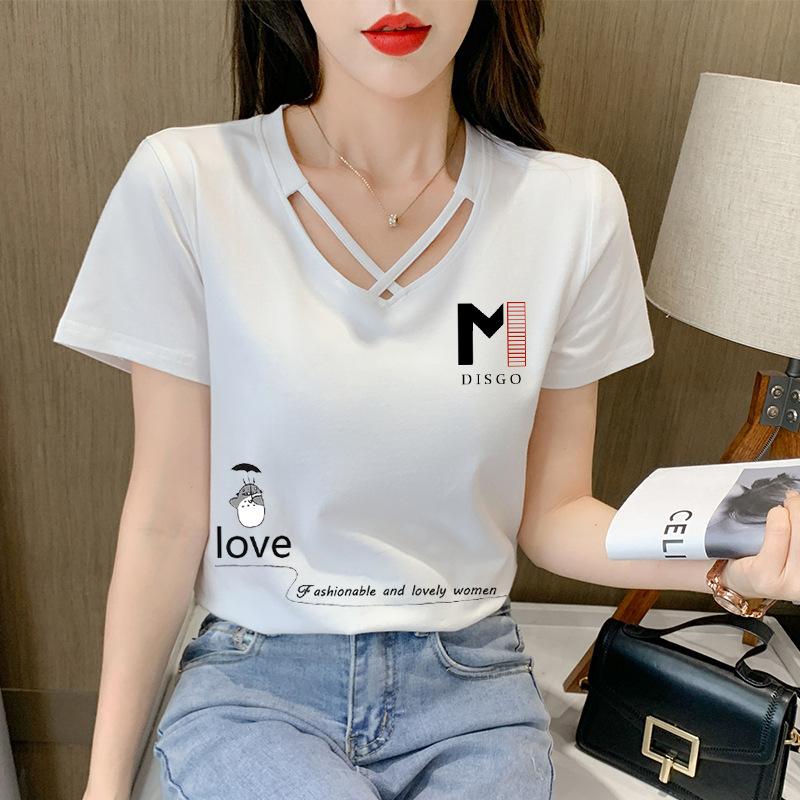 Женская футболка с v-образным вырезом, универсальная рубашка, топ Y2K, женская футболка с короткими рукавами, модная корейская дизайнерская однотонная футболка с короткими рукавами