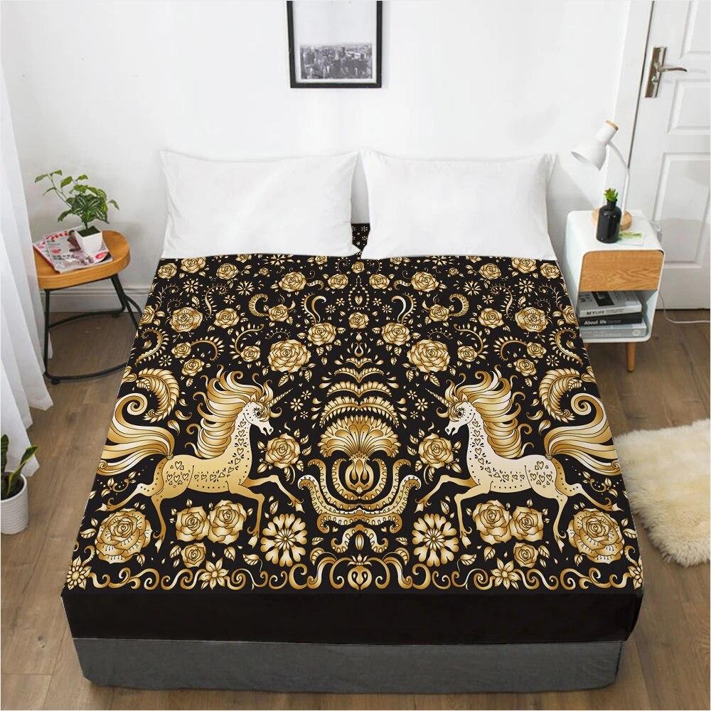 Простыни наматрасник с резинкой, постельное белье, простыня, 90x200, 180x200, 200x220, размер, 3D-печать, черный, золотой — купить товар онлайн с бесплатной доставкой по всему миру!