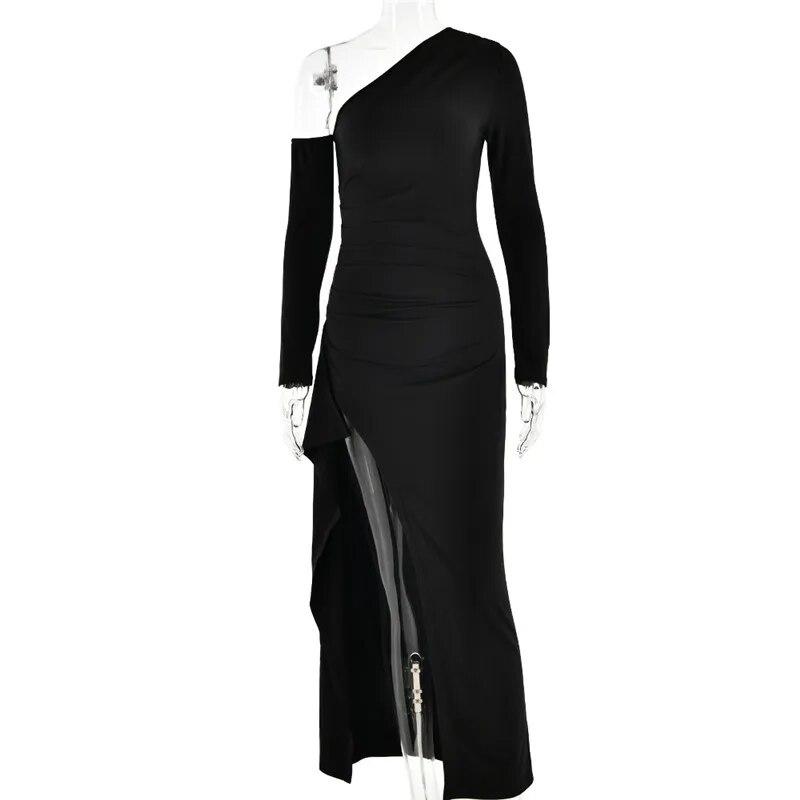 Новое цельное платье макси с высоким разрезом, женское платье с длинным рукавом и открытой спиной, сексуальное клубное вечернее длинное платье, женские однотонные модные лоскутные платья с рюшами