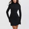 Элегантное сексуальное мини-платье с двумя карманами, женское новое однотонное тонкое офисное женское платье с длинным рукавом, винтажное лоскутное дизайнерское повседневное платье 2024