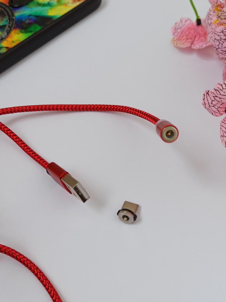 Магнитный USB кабель для зарядки телефона и других гаджетов. Магнитный кабель - это удобная вещь, позволяющая сохранить разъем телефона. В магазине кабель предоставлен в разных цветах. Адаптера есть Micro USB, Type C и for iPhone Я заказывала кабель красного цвета с адаптером Type C Длина кабеля 1м. - все пришло соответственно с заказом. Примагничиваются адаптеры со шнуром хорошо. Оплётка шнура качественная, перегибаться не будет и должна прослужить долго. Когда он подключен к сети и идёт зарядка, то возле адаптера есть маленькая лампочка, которая горит синим цветом. Работает кабель хорошо. Заказом довольная!