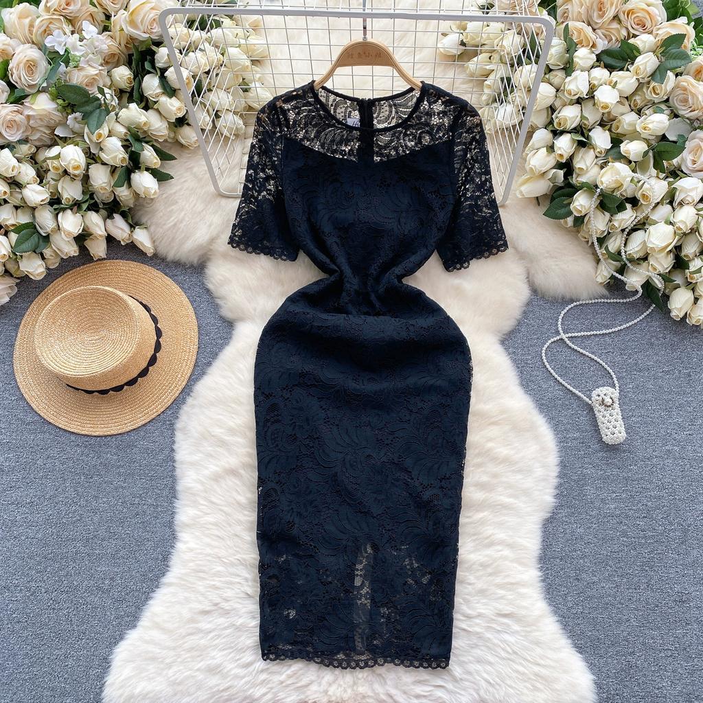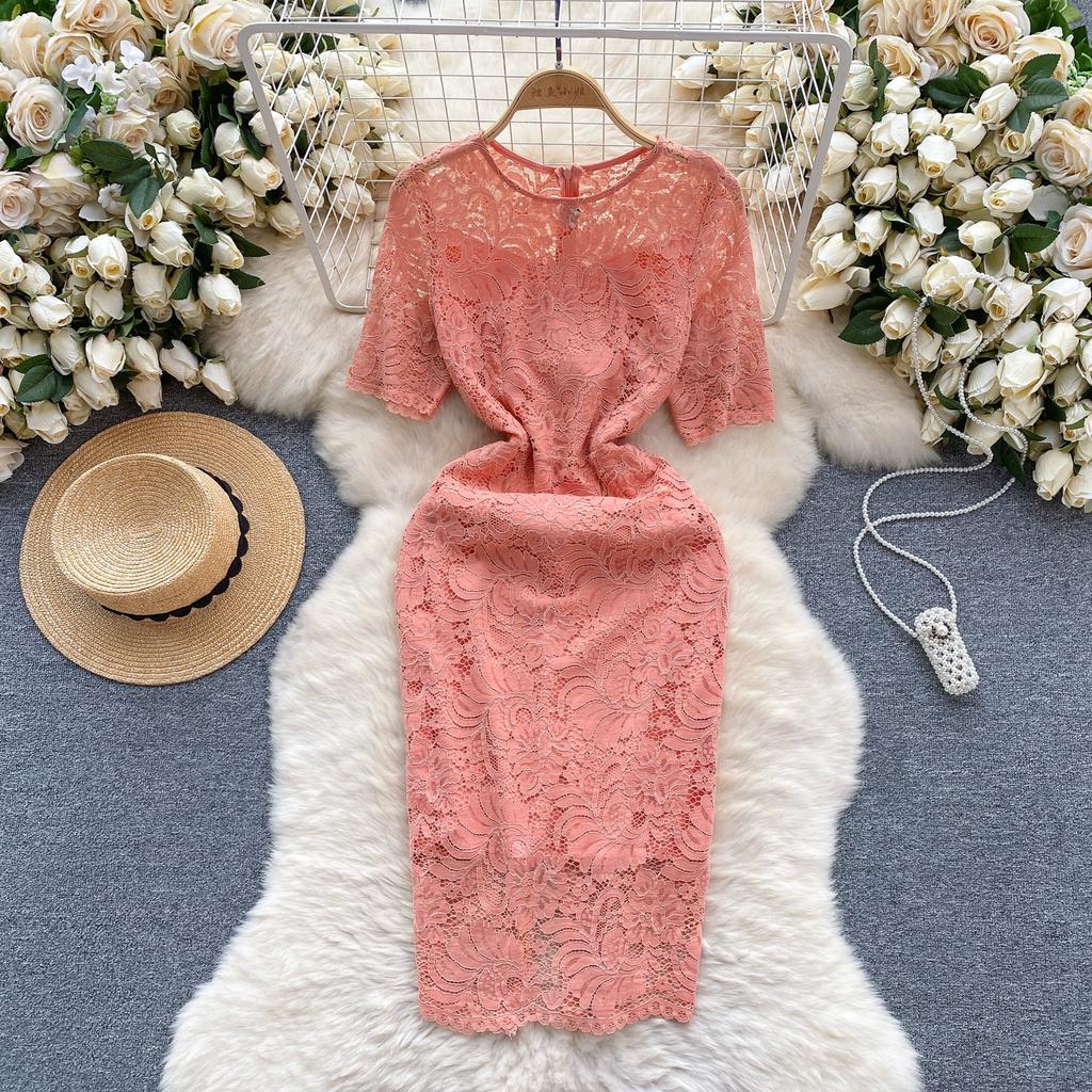 Летние женские однотонные кружевные офисные тонкие облегающие платья-карандаш