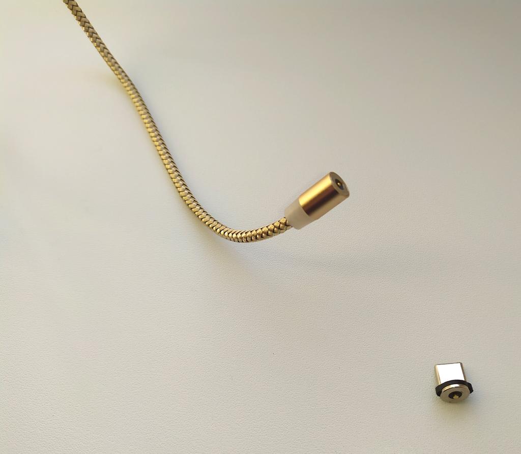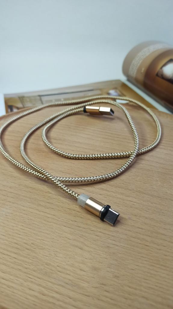 Магнитный кабель для зарядки гаджетов. Можно выбрать у продавца 3 варианта коннектора(для iOS Micro USB Type-C) и 3 цвета(красный, золотисты, чёрный). Пропускной ток аксессуара велик, он равен 2 А. Этот показатель достаточен для во всех смыслах эффективной зарядки аккумуляторов любой емкости. Кабель USB Type-C - USB имеет прочную нейлоновую оболочку, по этому вы сможете не опасаться за целостность изделия. Особенностью конструкции модели является наличие магнитного разъема. Использованы металлические коннекторы, отличающиеся значительной стойкостью к износу. При оформлении дизайна кабеля был использован стильный золотистый цвет.