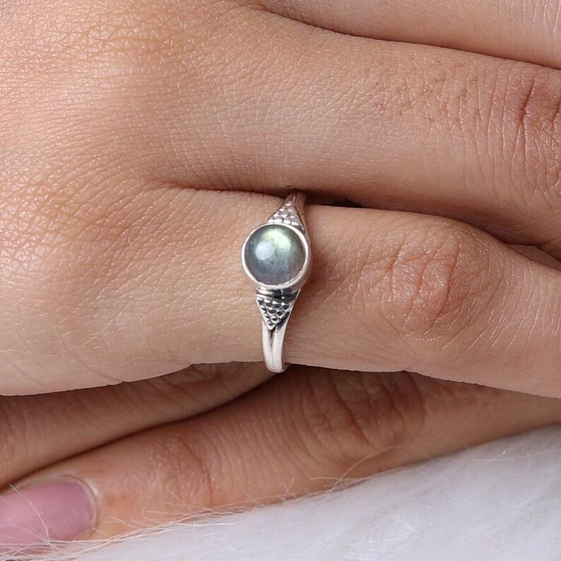 Лабрадорит Круглый драгоценный камень Дизайнерское кольцо ручной работы в стиле бохо, серебряные ювелирные украшения, серебро 925 пробы, кольцо с безелем — купить товар онлайн с бесплатной доставкой по всему миру!