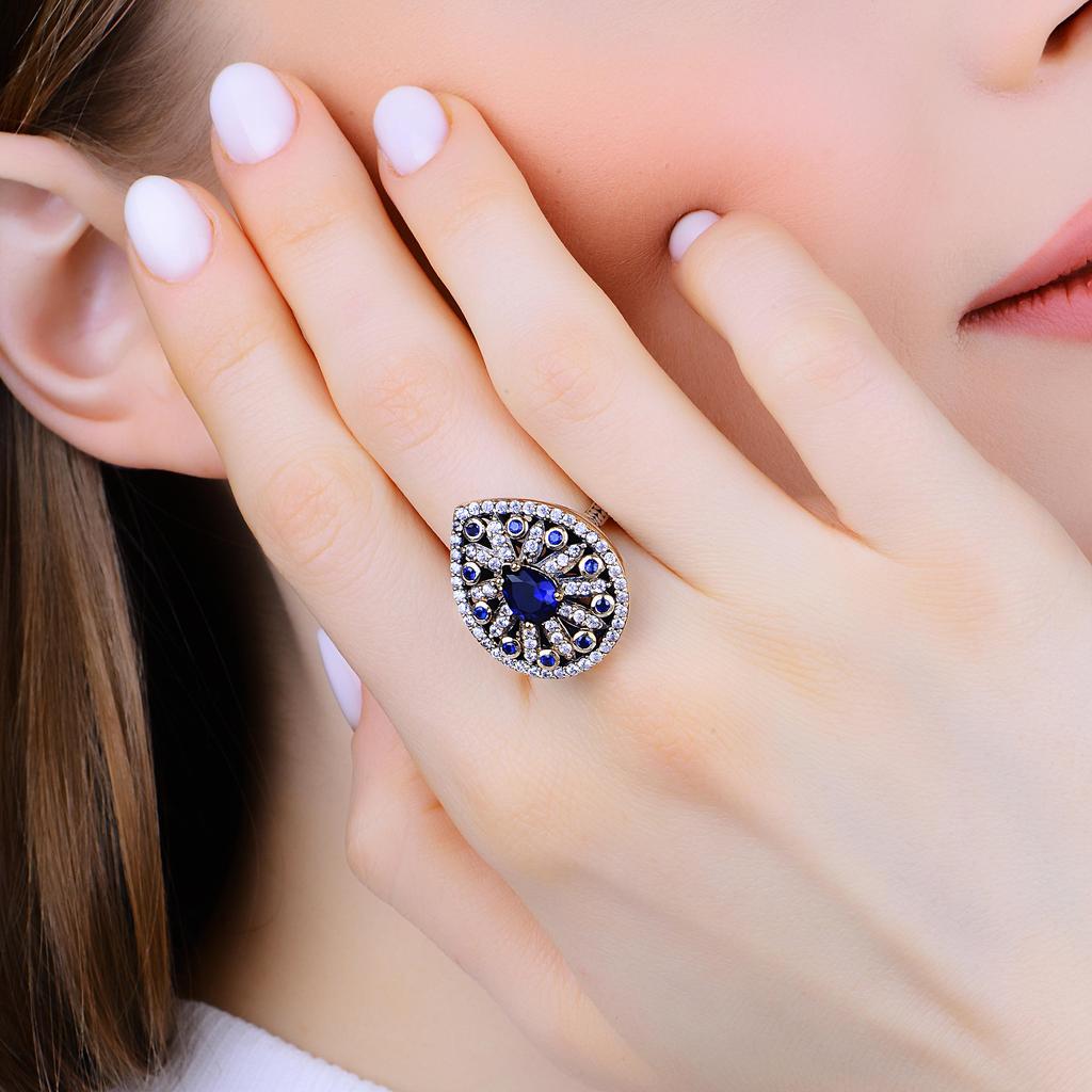Взгляните на великолепие древних империй с этим поразительным уникальным серебряным кольцом с сапфиром.. Это изделие, изготовленное исключительно вручную, воплощает в себе величие турецкого османского дизайна, делая его гораздо больше, чем просто аксессуаром: это кольцо является свидетельством богатого наследия и личного стиля.