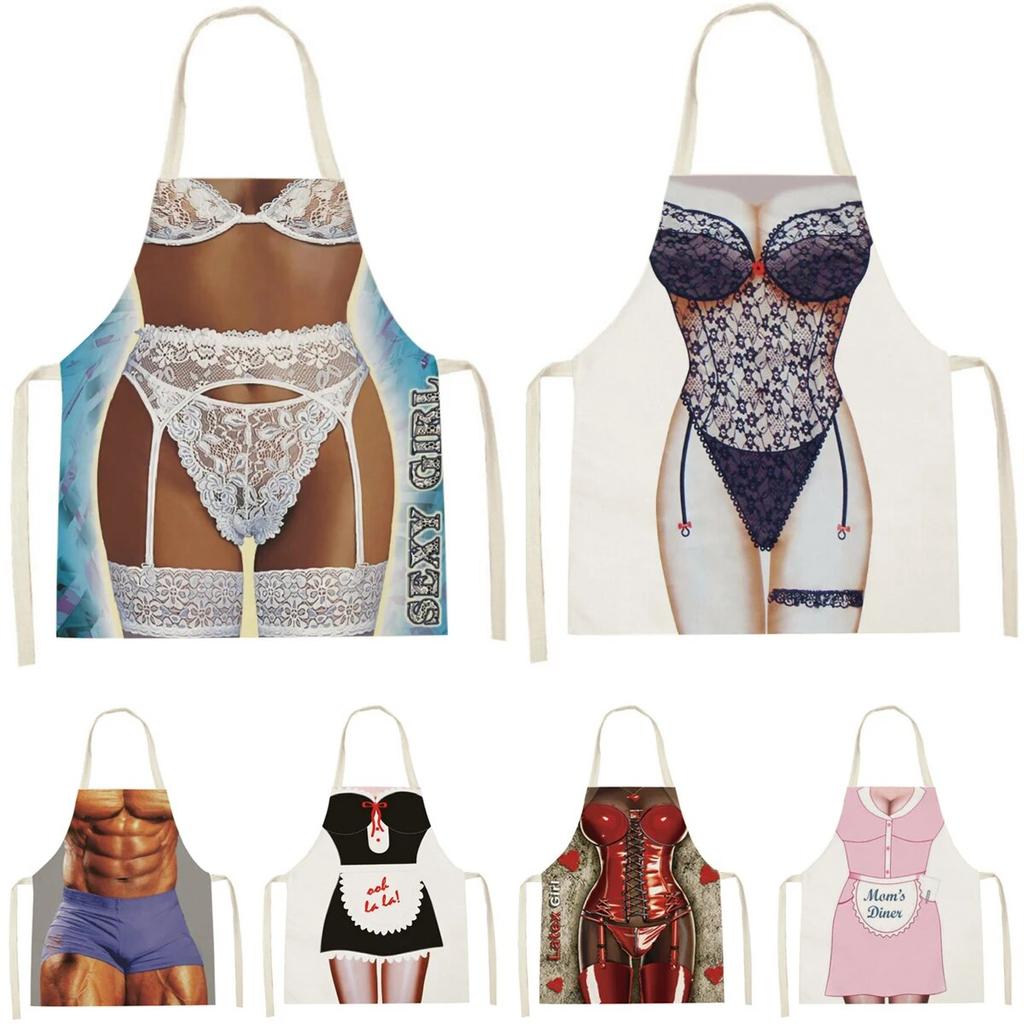 68x55 см бикини мускулистый мужской кухонный фартук из хлопка и льна для уборки дома кухонные аксессуары тест на масло барбекю нарезанный