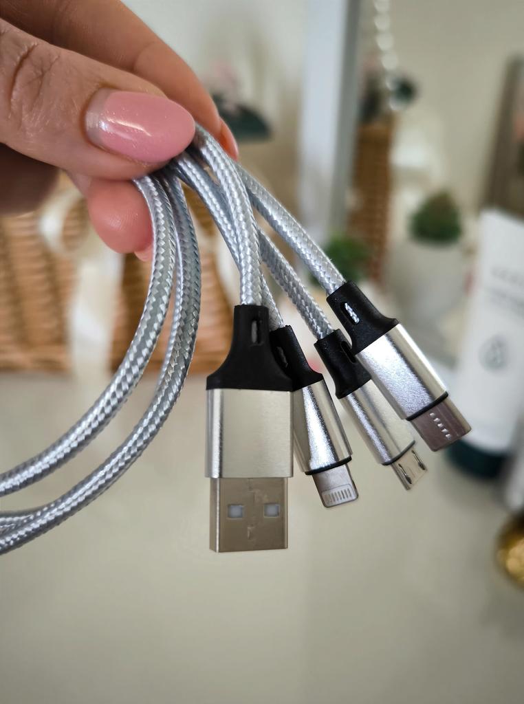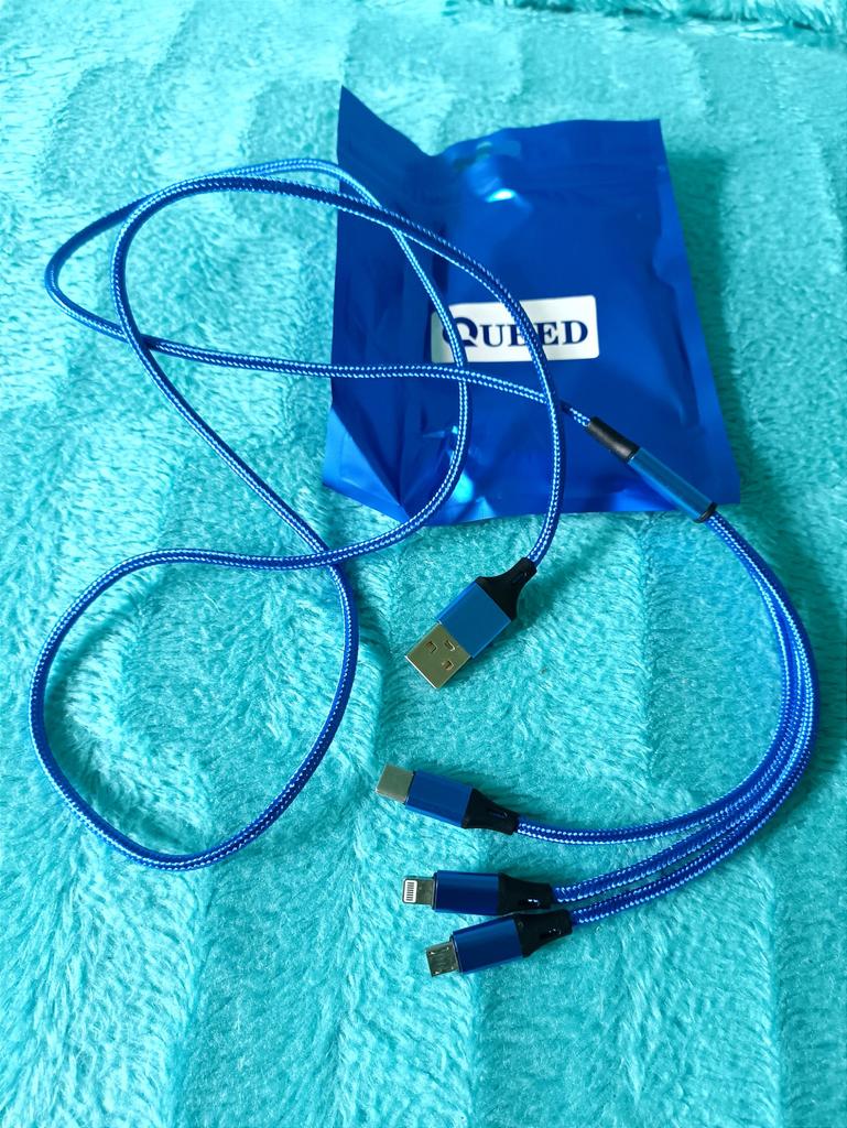 🌺 Зарядный кабель 3в1 🌺 Доставка месяц до Иркутска в сборной посылке!! 🎈 Трек живой! Упаковано отлично! 🫐 Ещё одна покупка в магазине Queed. 🫐 Отличный зарядный кабель. Длина провода 1 метр. 🫐 Оплётка у провода надёжная, прорезиненная, думаю прослужит довольно долго! 🫐 Сам провод это 3 разъёма - Tupe-C, micro- USB и iPhones, которые можно одновременно подключить. Поэтому ни один ваш гаджет не останется без зарядки! 🫐 Зарядка действительно быстрая. 🤩 Рекомендую 👍 Всем удачных покупок! 💞 И спасибо за ваши 💕💕