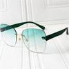 Модные солнцезащитные очки без оправы, женские роскошные винтажные солнцезащитные очки с нерегулярной отделкой, женские очки с градиентом, зеленые UV400