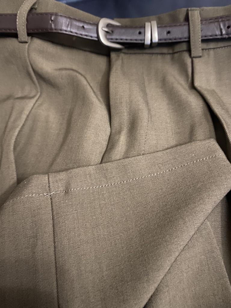 Брюки сели на ОБ105 как надо)), брючины широкие, по низу 28 см, в самой широкой верхней точке 34 см, длина по боковому шву без пояса 102 см. Ткань п/э с эластаном, струящаяся, цвет не коричневый, сближение к хаки. Звезду сняла за неподходящий для такого фасона подшив- надо распороть и подшить невидимым швом. Товар рекомендую. Спасибо Джуму и продавцу!
