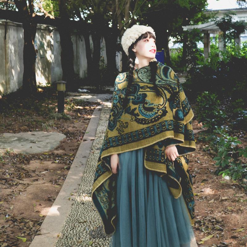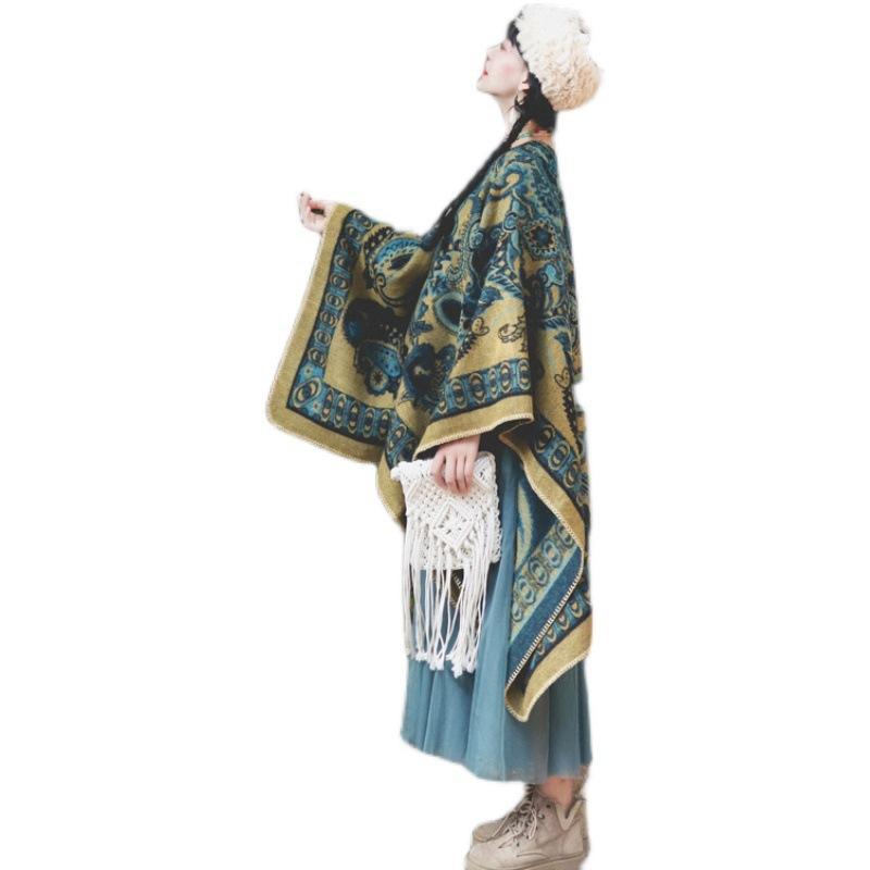 Экзотическая теплая шаль вязанной вязки.