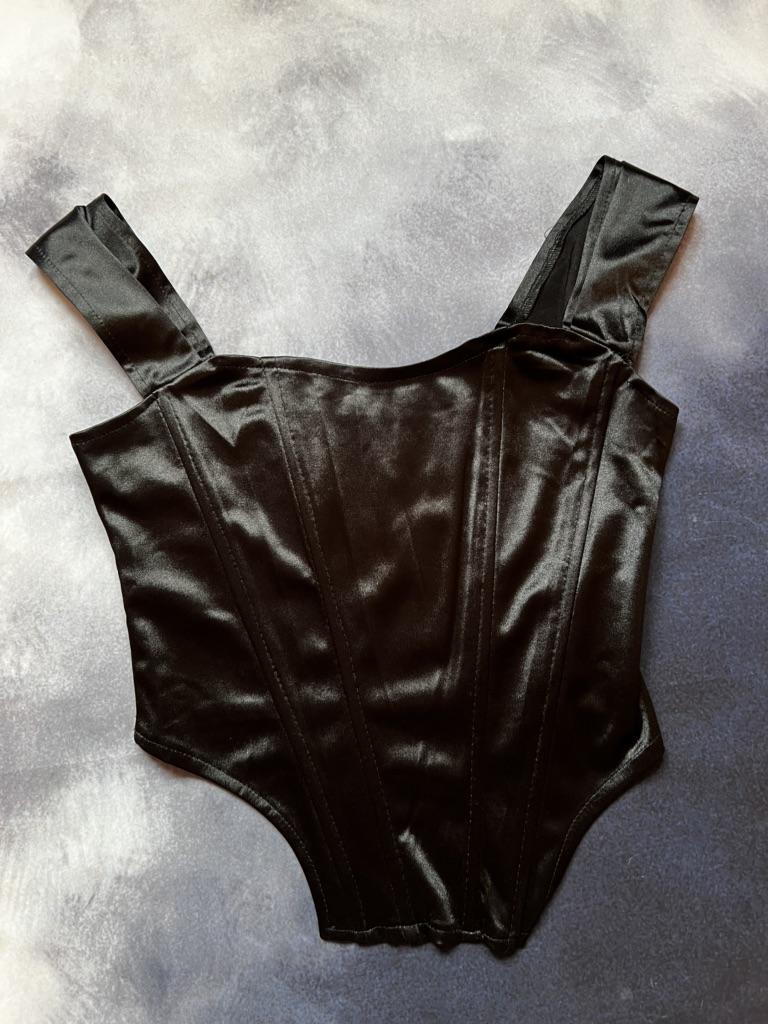 Корсетный топ 🖤 Отличная вещь для повседневного выхода и на вечер. С джинсами будет выглядеть стильно, а с красивой юбкой празднично. Пошито из смесовой ткани: полиэстер и спандекс. Тянется совсем чуть-чуть, поэтому важно не прогадать с размером. У меня М. На параметры 84-69 село прекрасно. Замеры: Обхват груди - 79-88 см Длина - 38 см (без лямок, от верхней точки груди до низа) Лямки можно носить по разному: приспущенными, на плечах, в расправленном виде или в сложенном. Всяко смотрится прекрасно.