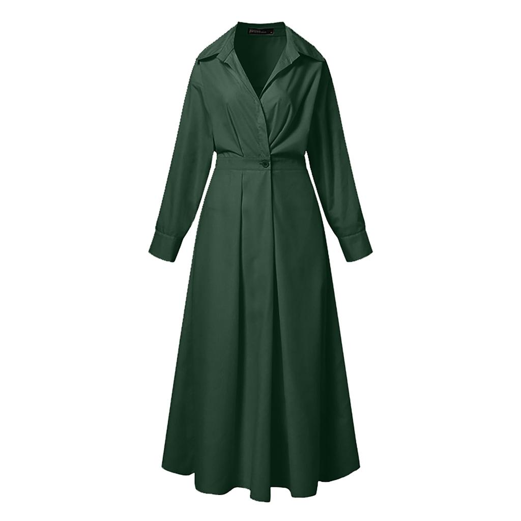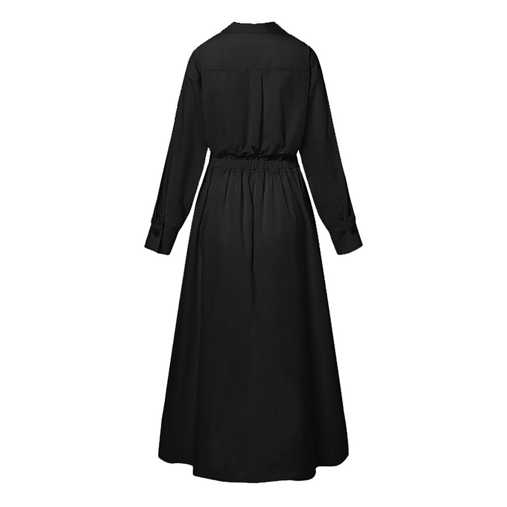 Женская мода повседневное свободное платье с длинным рукавом с высокой талией повседневное длинное платье-рубашка