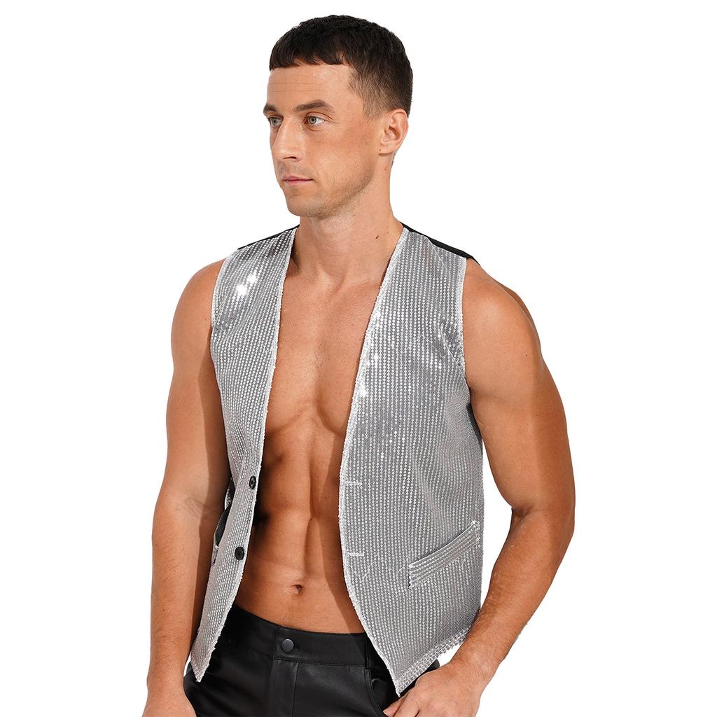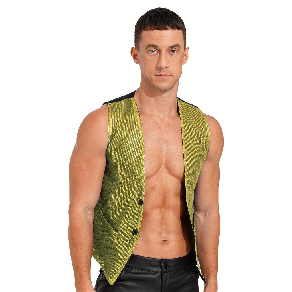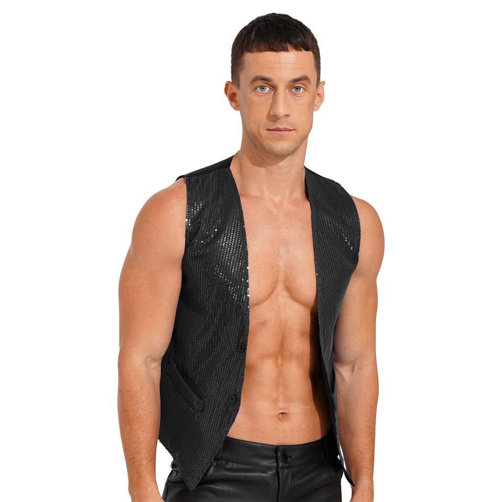 Мужской и женский сверкающий жилет с блестками на пуговицах, жилет без рукавов, жилет для клубного сценического костюма