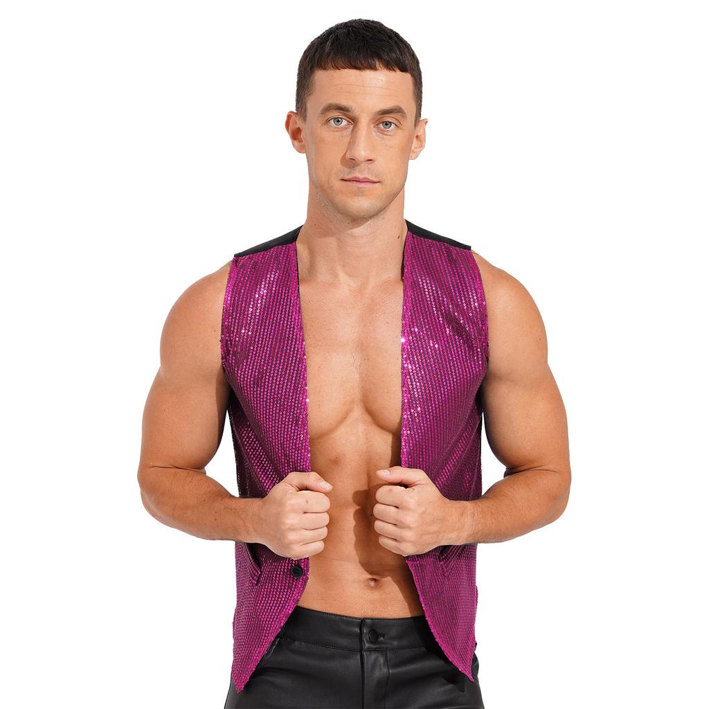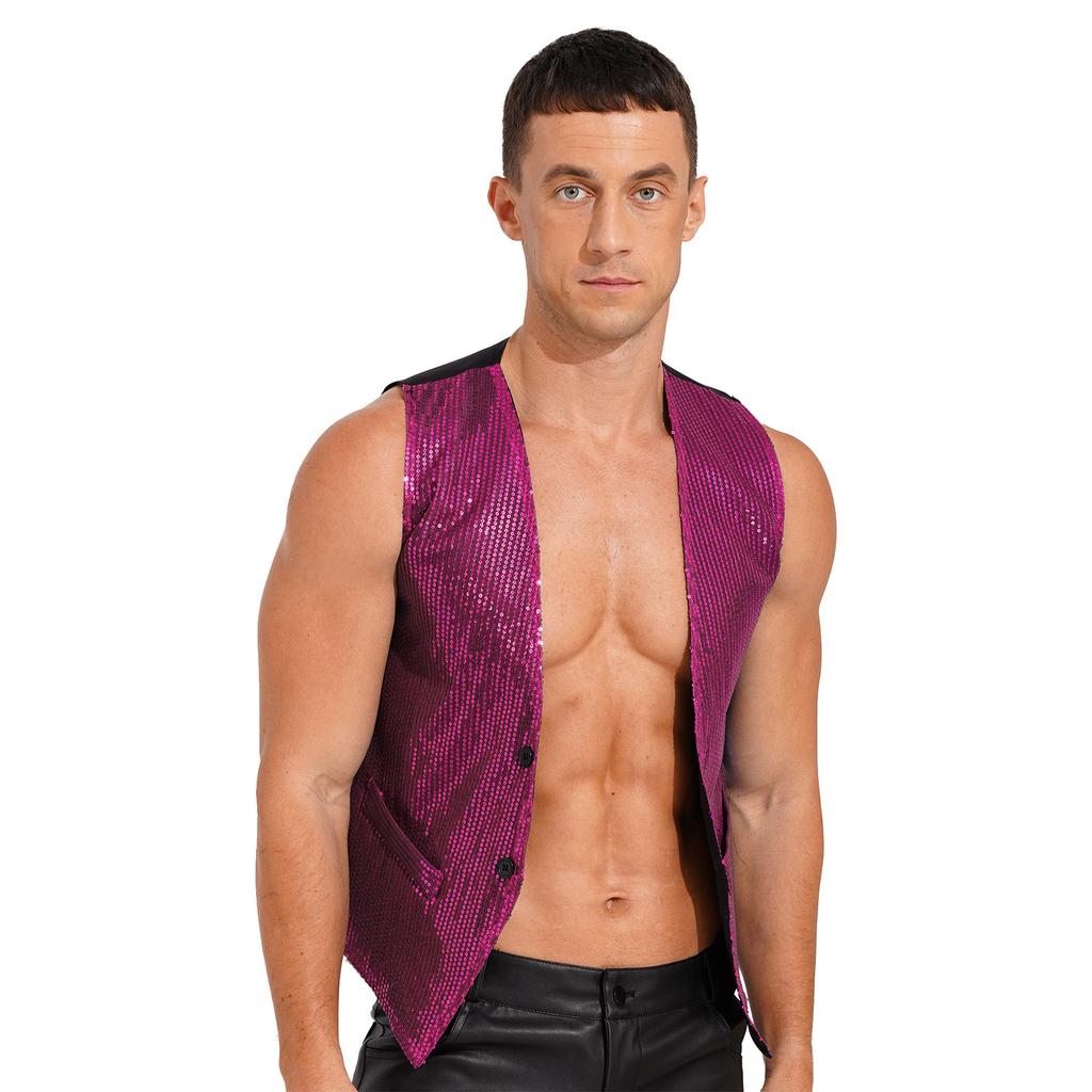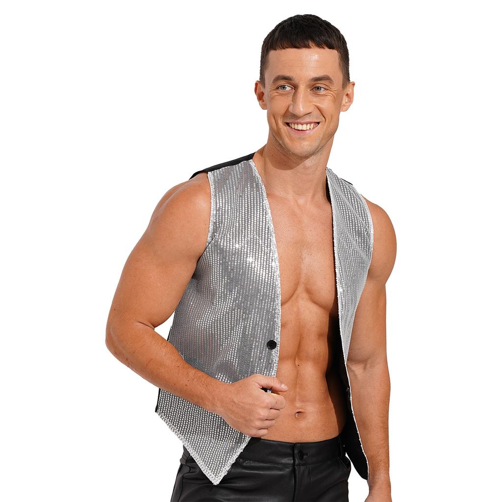 Мужской и женский сверкающий жилет с блестками на пуговицах, жилет без рукавов, жилет для клубного сценического костюма