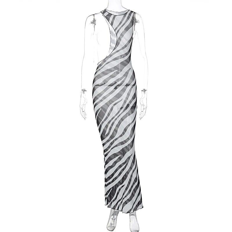 Длинное пляжное платье, накидка, сексуальное прозрачное сетчатое платье макси в полоску с вырезами, облегающее летнее платье для отдыха, женское платье 2023