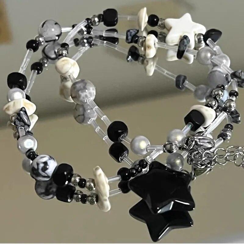 Ожерелье-чокер со звездами и пентаграммой из бисера для женщин, винтажное милое крутое модное ожерелье-цепочка в стиле Хараджук Y2k, новинка