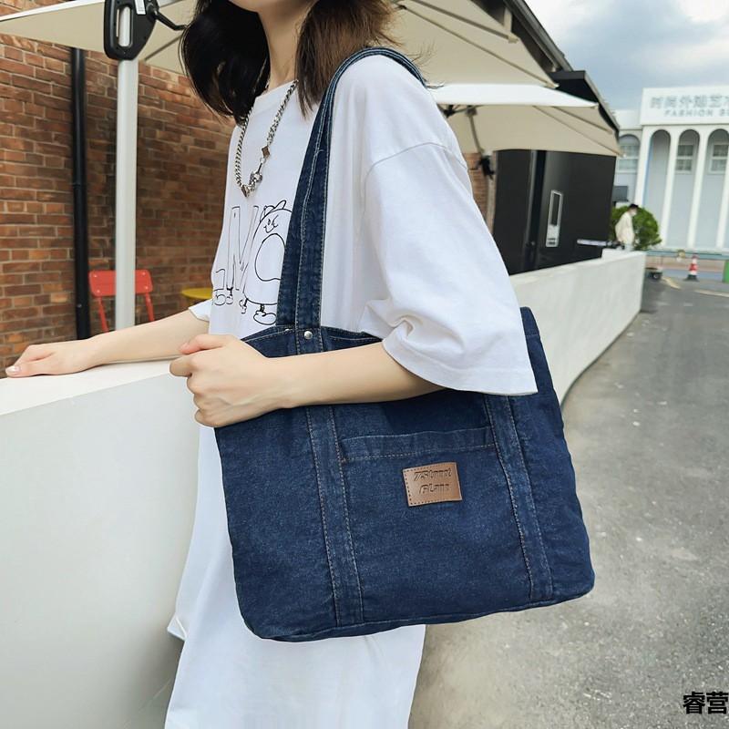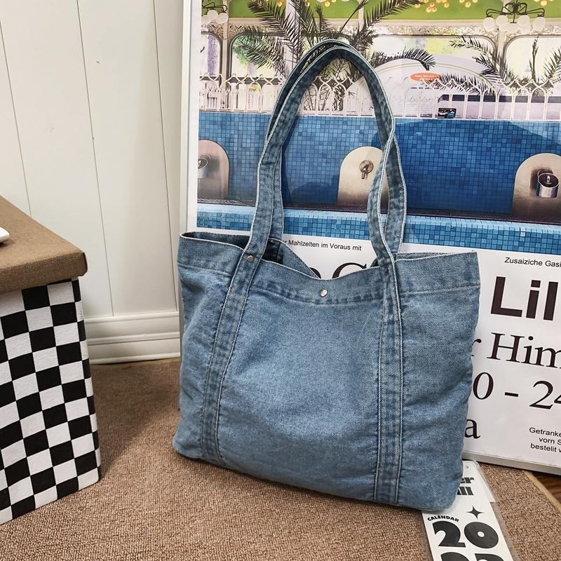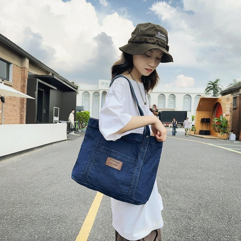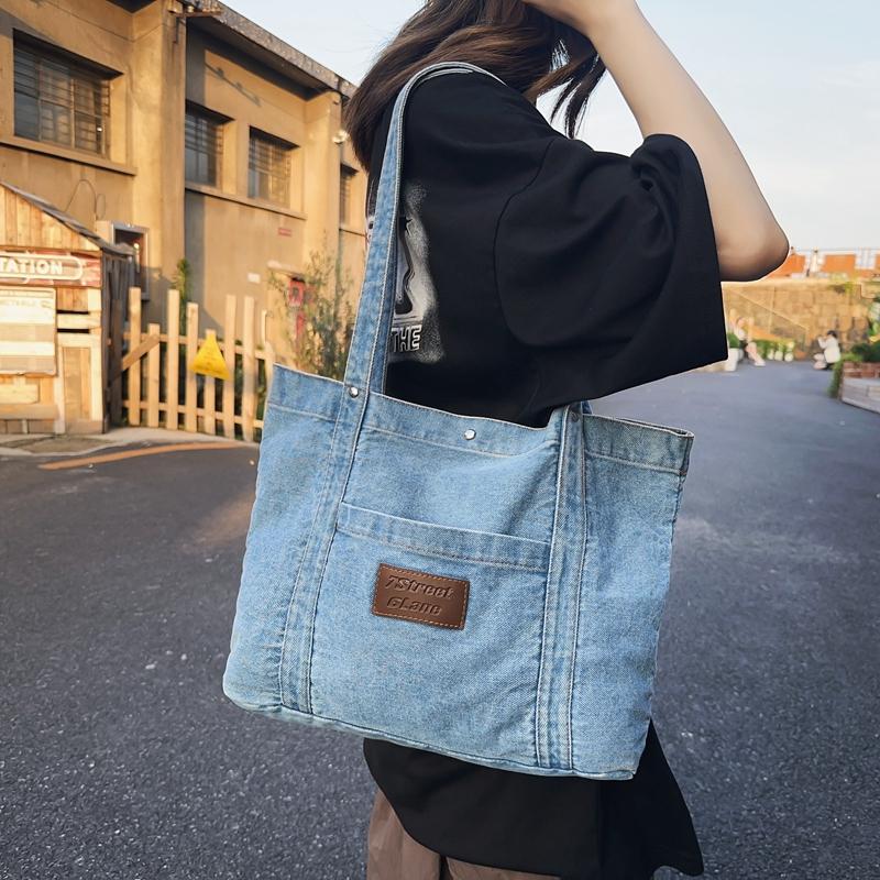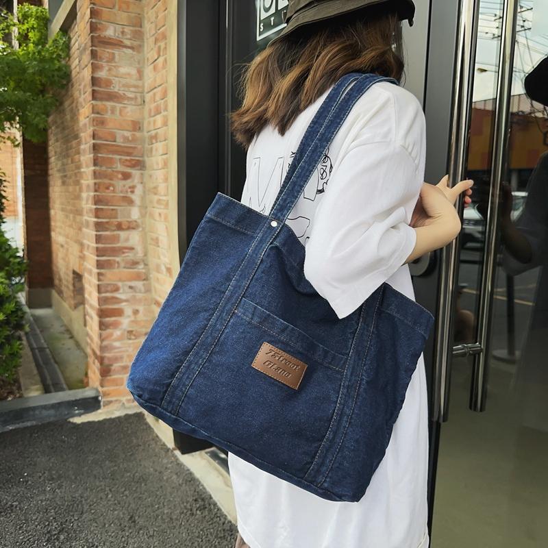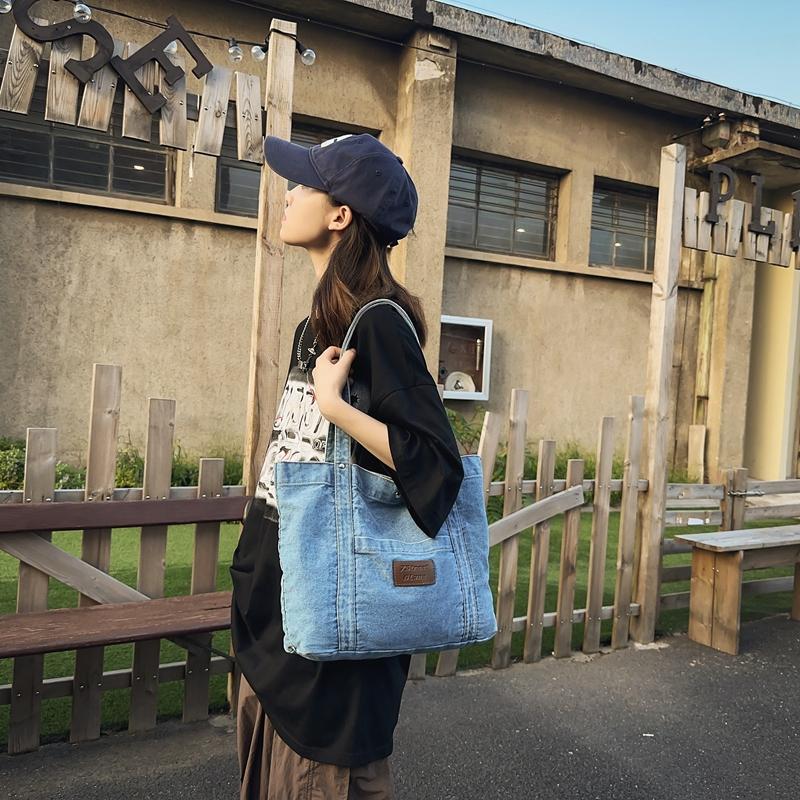 Джинсовая холщовая сумка через плечо Женская большая вместительная сумка для покупок Сумка-тоут Сумка