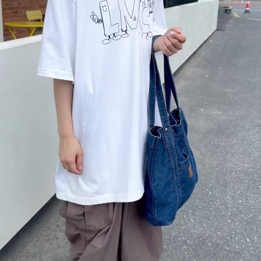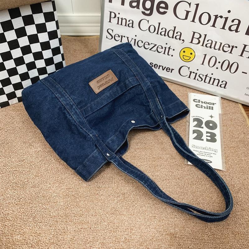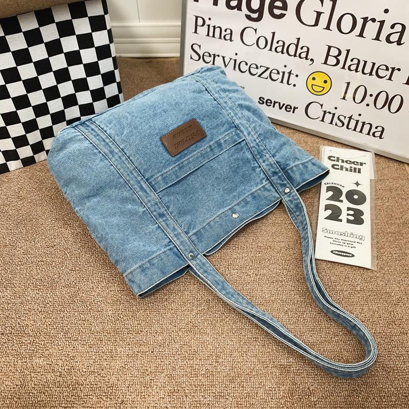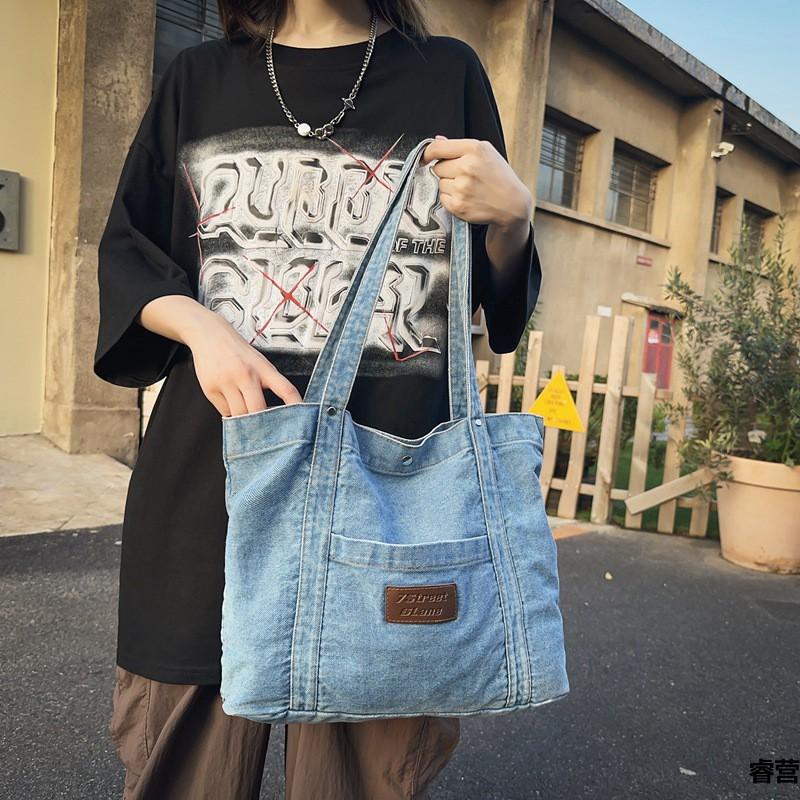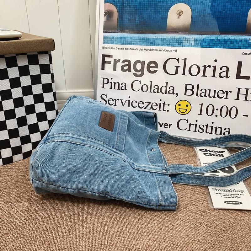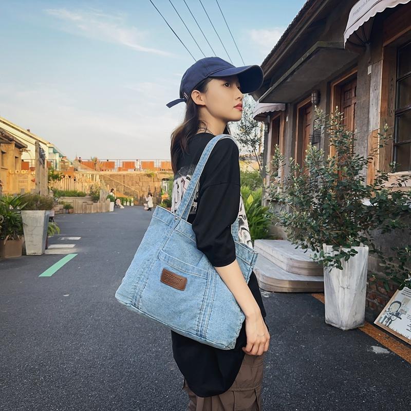 Джинсовая холщовая сумка через плечо Женская большая вместительная сумка для покупок Сумка-тоут Сумка