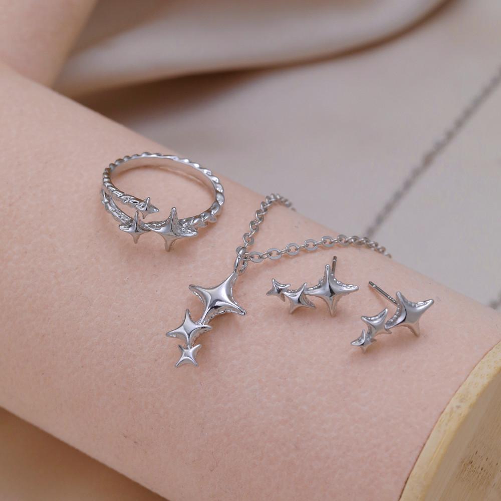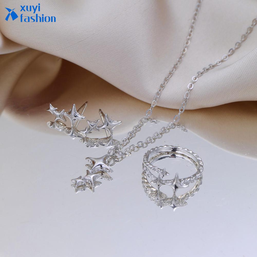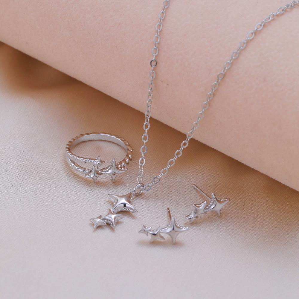 Простое ожерелье со звездой, серьги-гвоздики, набор колец для женщин, серебряная цепочка, ожерелья, аксессуары, ювелирные изделия